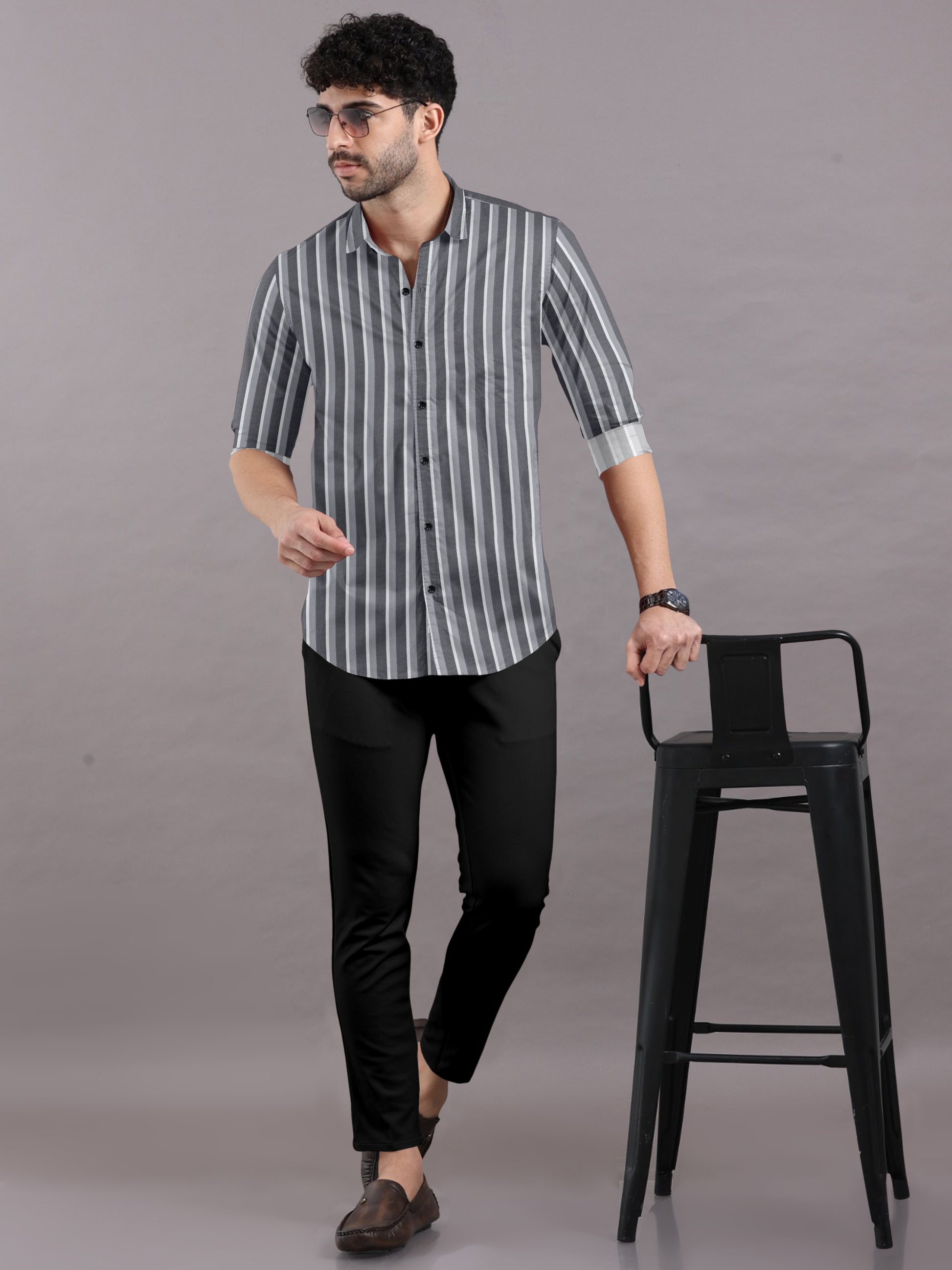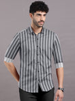 Chalk White With Dark And Light Grey Stripe Cotton Shirt