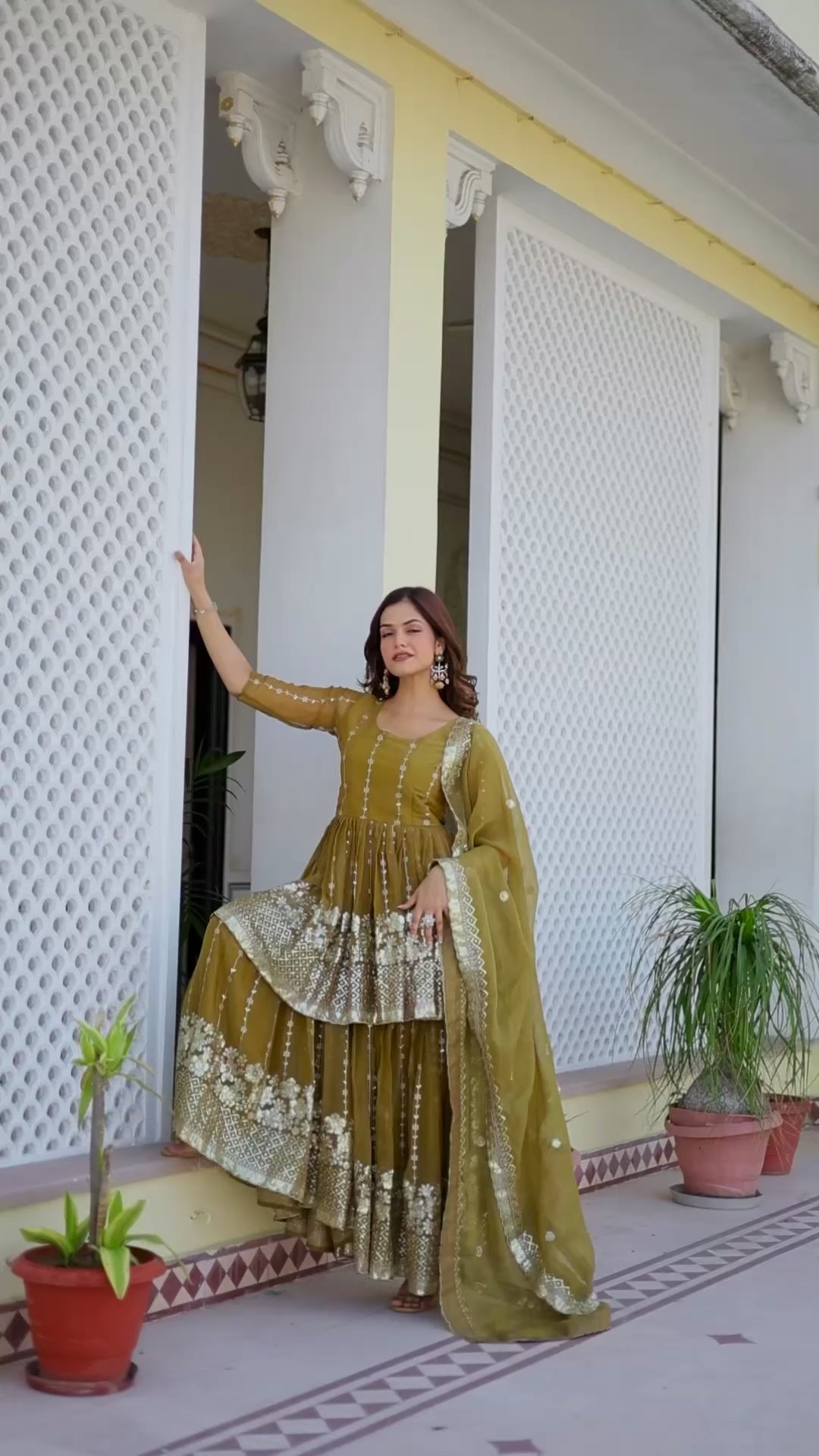 - Packaging detail: 1-Top, 1-Sharara, 1-Dupatta