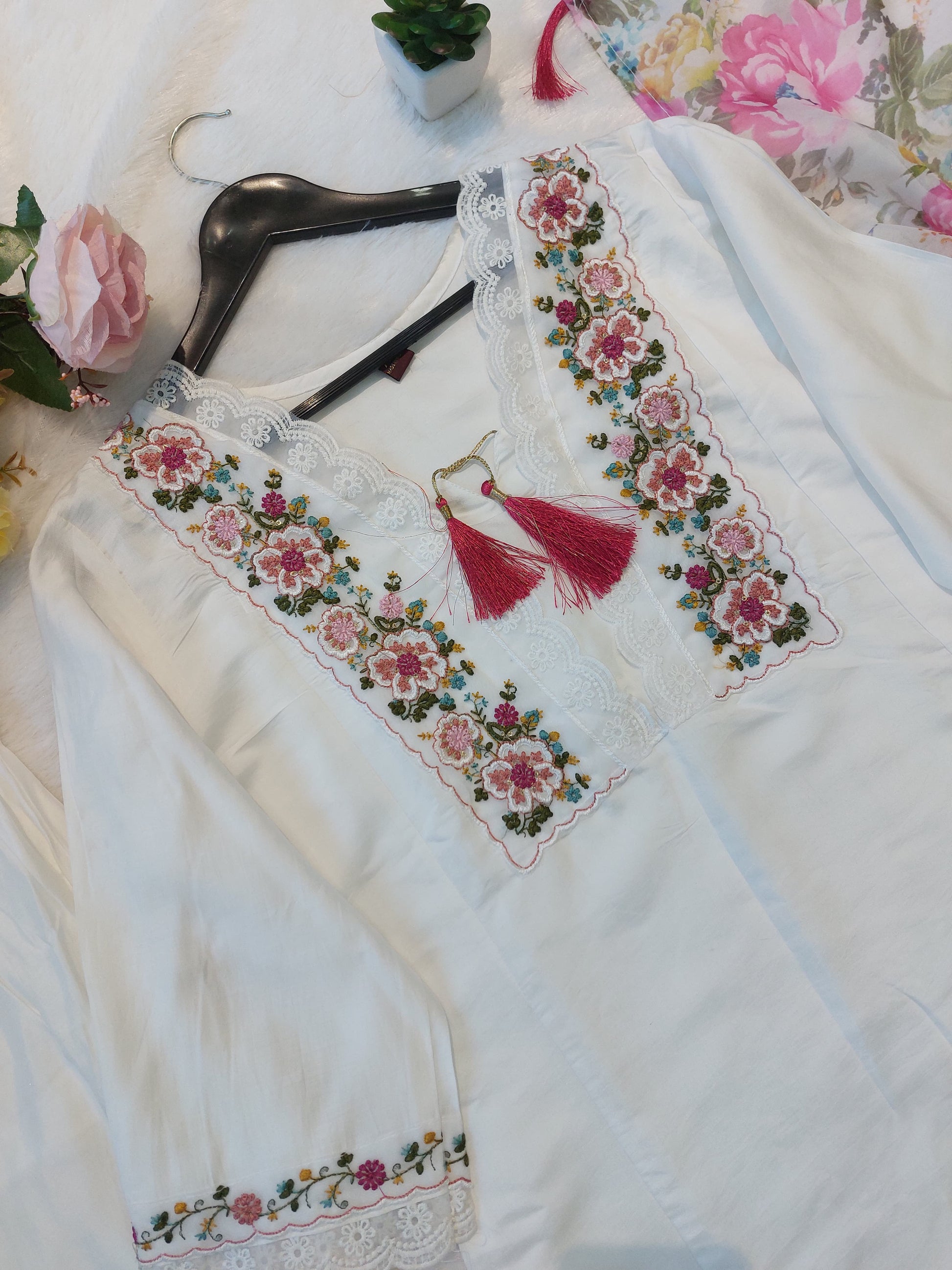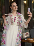 INDO ERA Women's silk embroidery A-line kurta pant with dupatta set for women