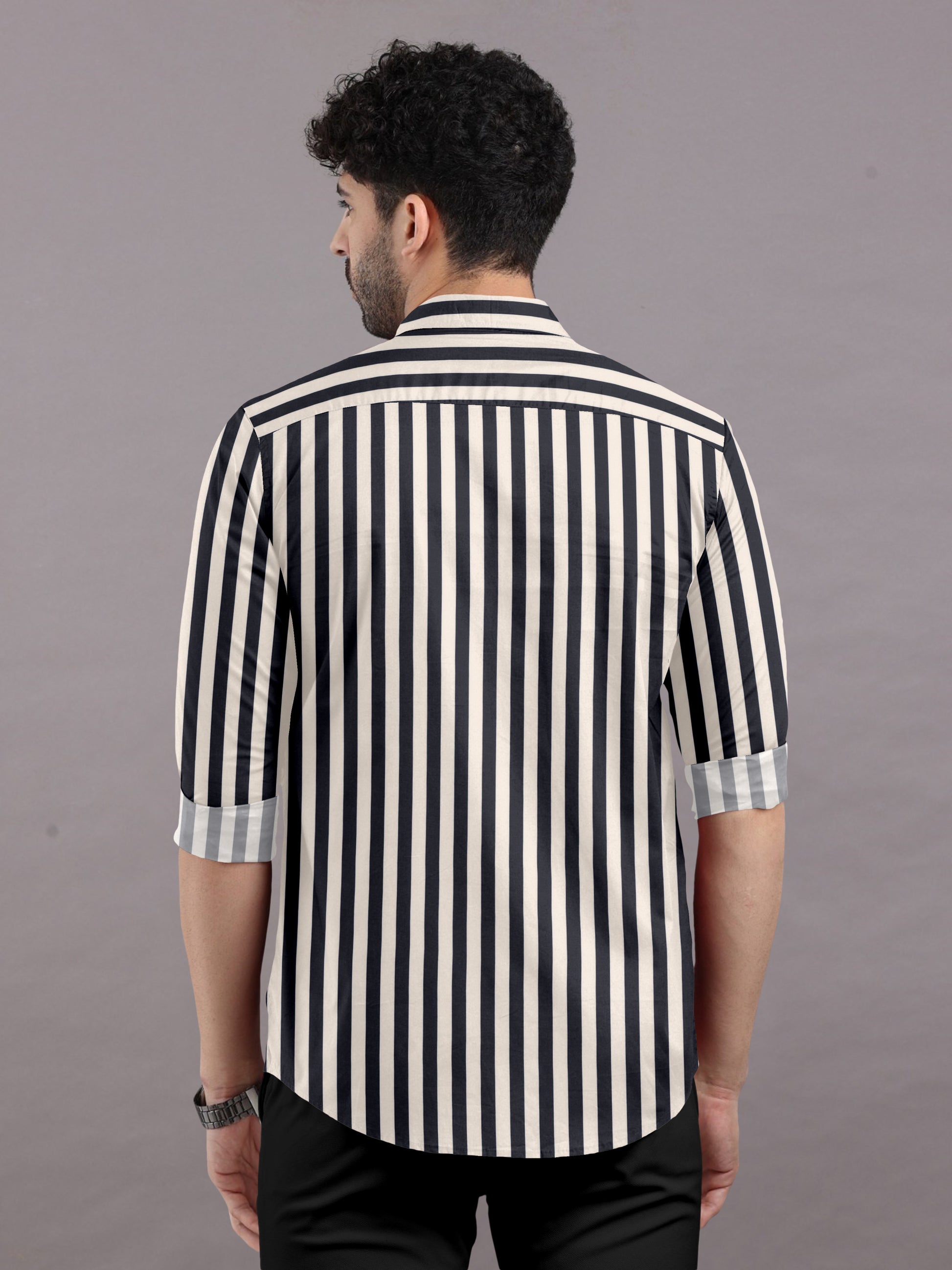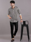 Jet Black With Coffee Cream Stripe Cotton Shirt