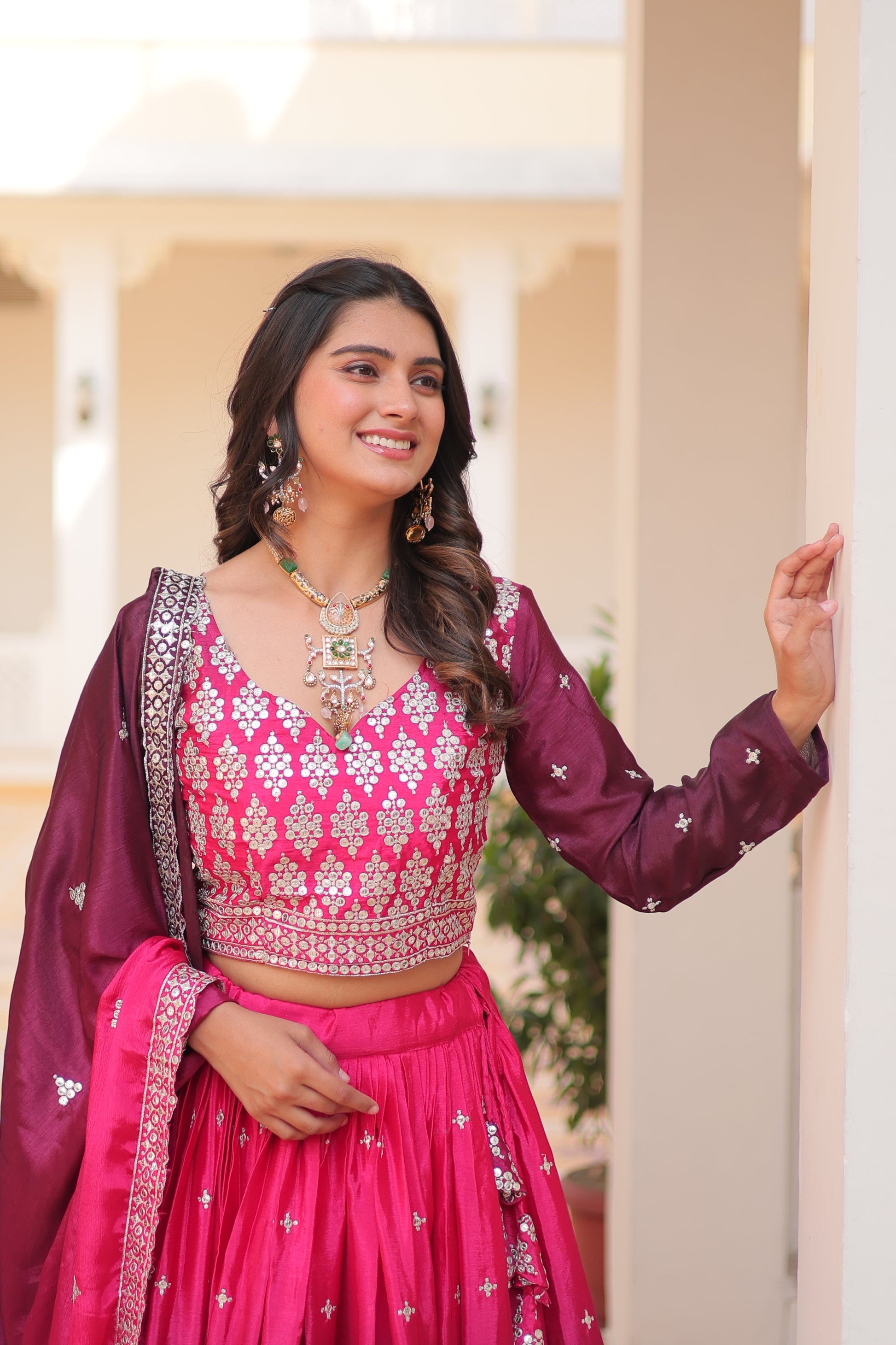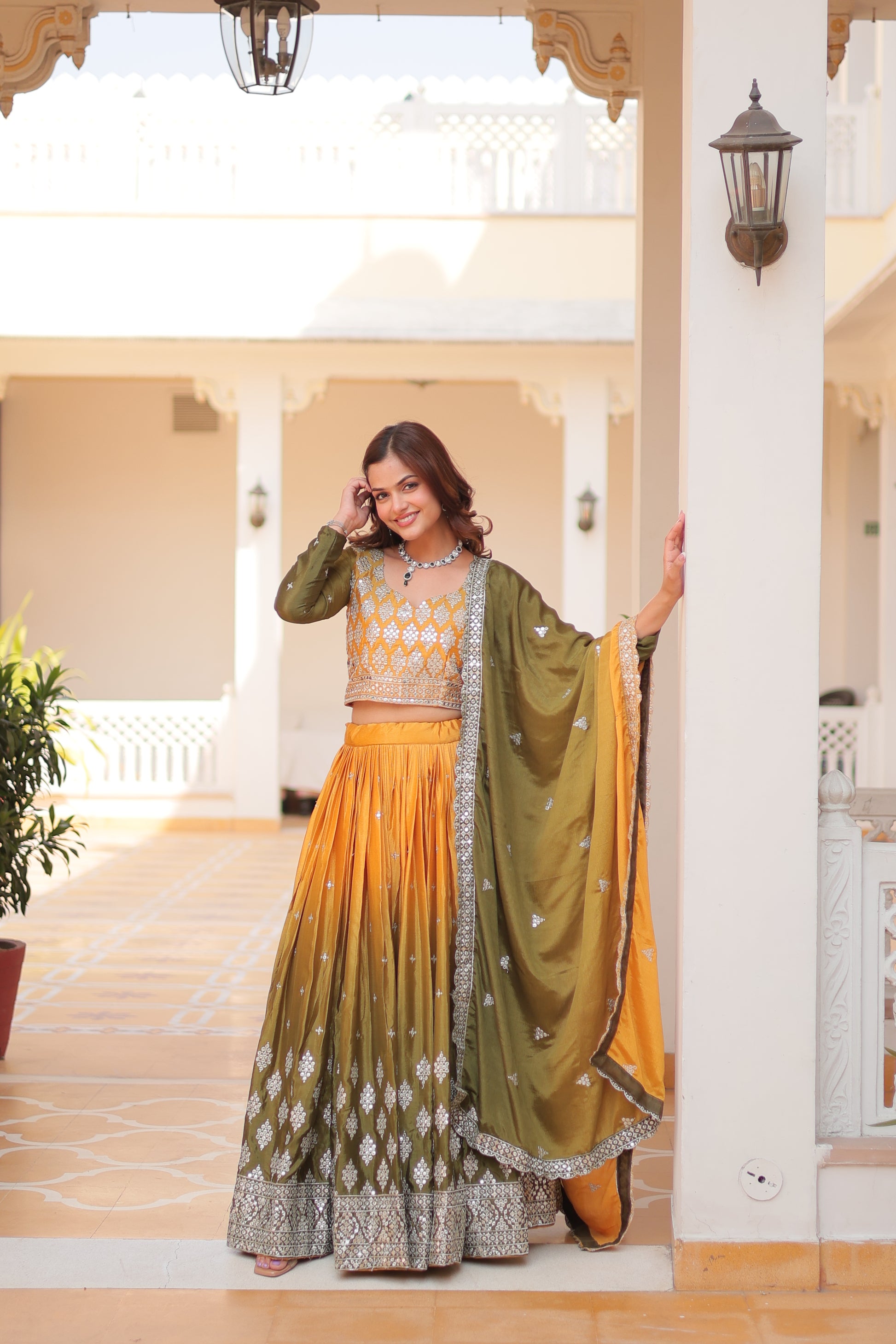 - Lehenga Work :- Embroidery thread work with sequence work.
