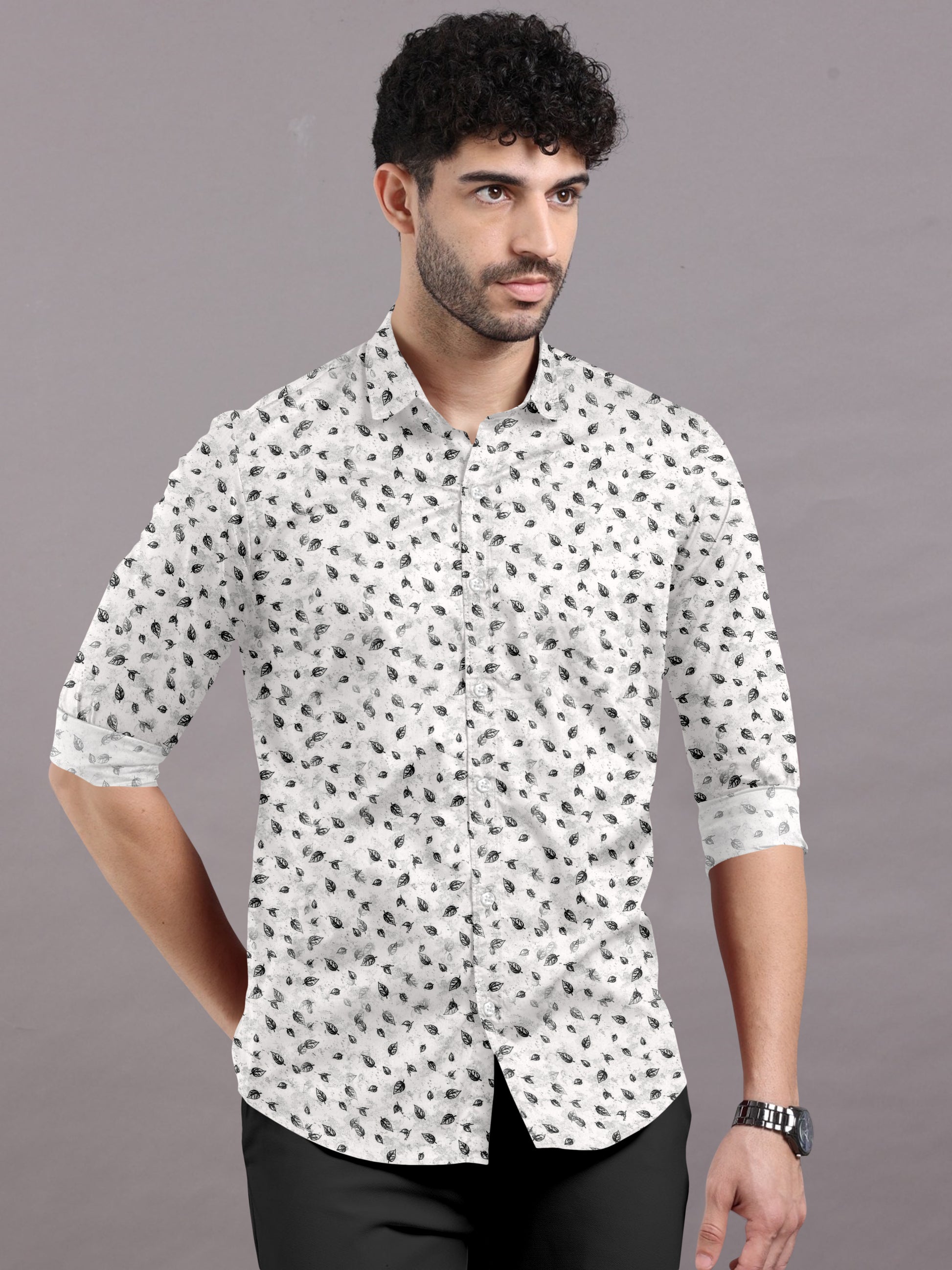 Twilight Leaf Printed Cotton Shirt